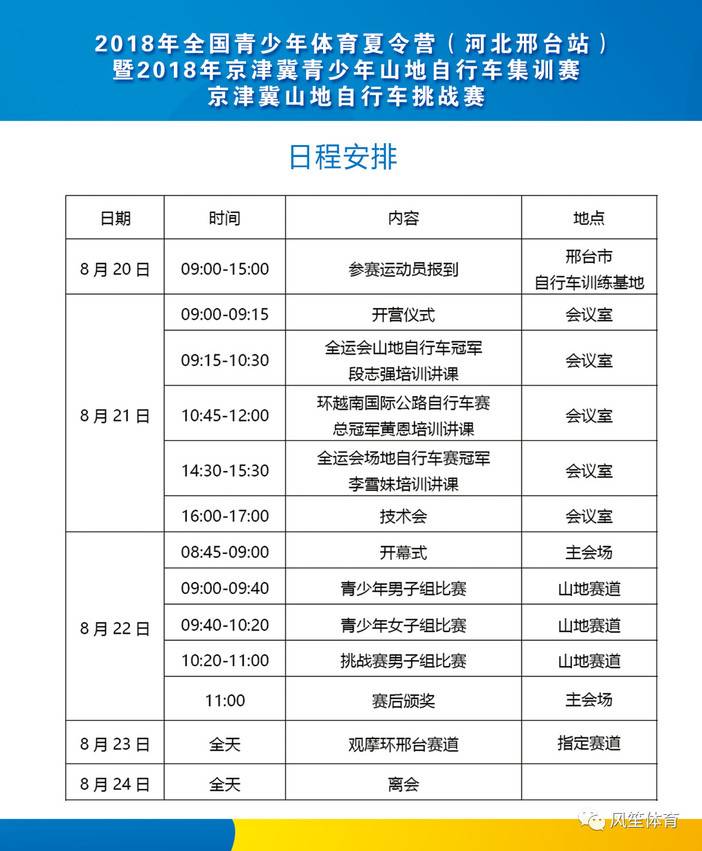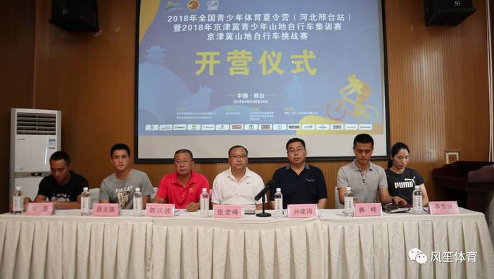 今日,2018年全国青少年体育夏令营(河北邢台站)暨2018年京津冀青少年山地自行车集训赛、京津冀山地自行车挑战赛开营仪式在邢台市虎跃山庄自行车训练基地举行,河北省体育局青少年业余训练管理中心副主任张宏峰、邢台市体育局副局长孙建涛、邢台市体育局竞训科科长郭庆波、风笙(北京)体育文化有限公司CEO韩峰、全运会山地自行车赛冠军段志强、全运会场地自行车赛冠军李雪妹、环越南国际公路自行车赛总冠军黄恩出席开幕式。邢台市体育局副局长孙建涛为大家致辞,河北省体育局青少年业余训练管理中心副主任张宏峰宣布夏令营正式启动!