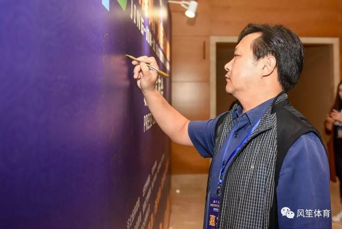风笙(北京)体育文化有限公司总经理韩峰与赞助商东莞市华诘运动器材有限公司中国区域市场部总经理何小珂进行签约仪式,双方达成友好合作。