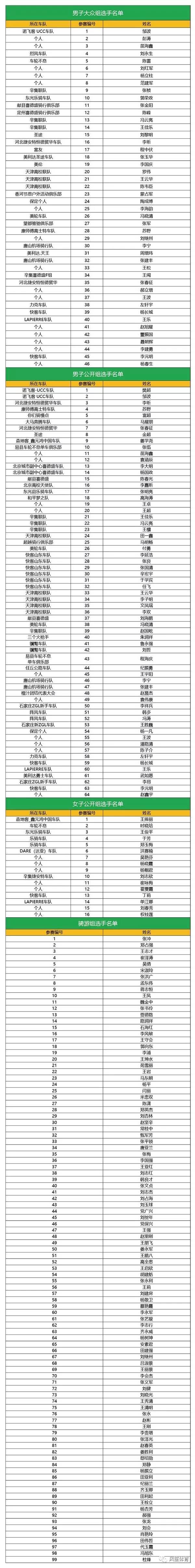 公告 I 关于2018河北省第三届全民健身、绿色骑行自行车联赛暨“金木杯”2018河北·安国自行车邀请赛选手名单公示