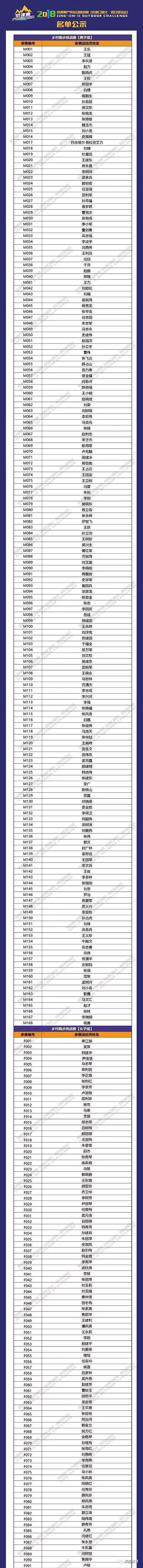 公告 I 关于2018京津冀户外运动挑战赛(张家口宣化·假日绿岛站)参赛选手的名单公示