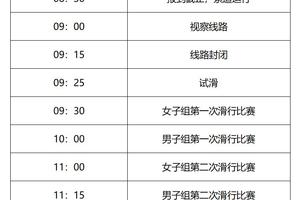 第一次滑行按照随机抽签的顺序出发;第二次滑行按照第一次滑行成绩,前30名参赛者倒序出发。每次滑行,女子组先出发,男子组后出发。